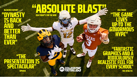 “From the moment we decided to make EA SPORTS College Football 25, the passionate college football fans out there were our team’s north star. This game is for the fans, and the response we’ve seen from across the collegiate landscape, athletes, creators, celebrities and the core community has been nothing short of spectacular,” said Daryl Holt, SVP and Group GM, EA SPORTS. “Every team is someone's favorite, and College Football 25 is a testament to the passion and dedication of our developers to build the most authentic college football experience possible for our fans. We couldn’t be more excited to welcome millions more into the game with today’s launch.”