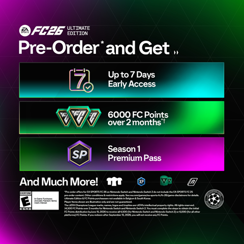 *Conditions and restrictions apply. Offers may not be available on all platforms and/or all territories. See ea.com/games/ea-sports-fc/fc-26/game-disclaimers for details.